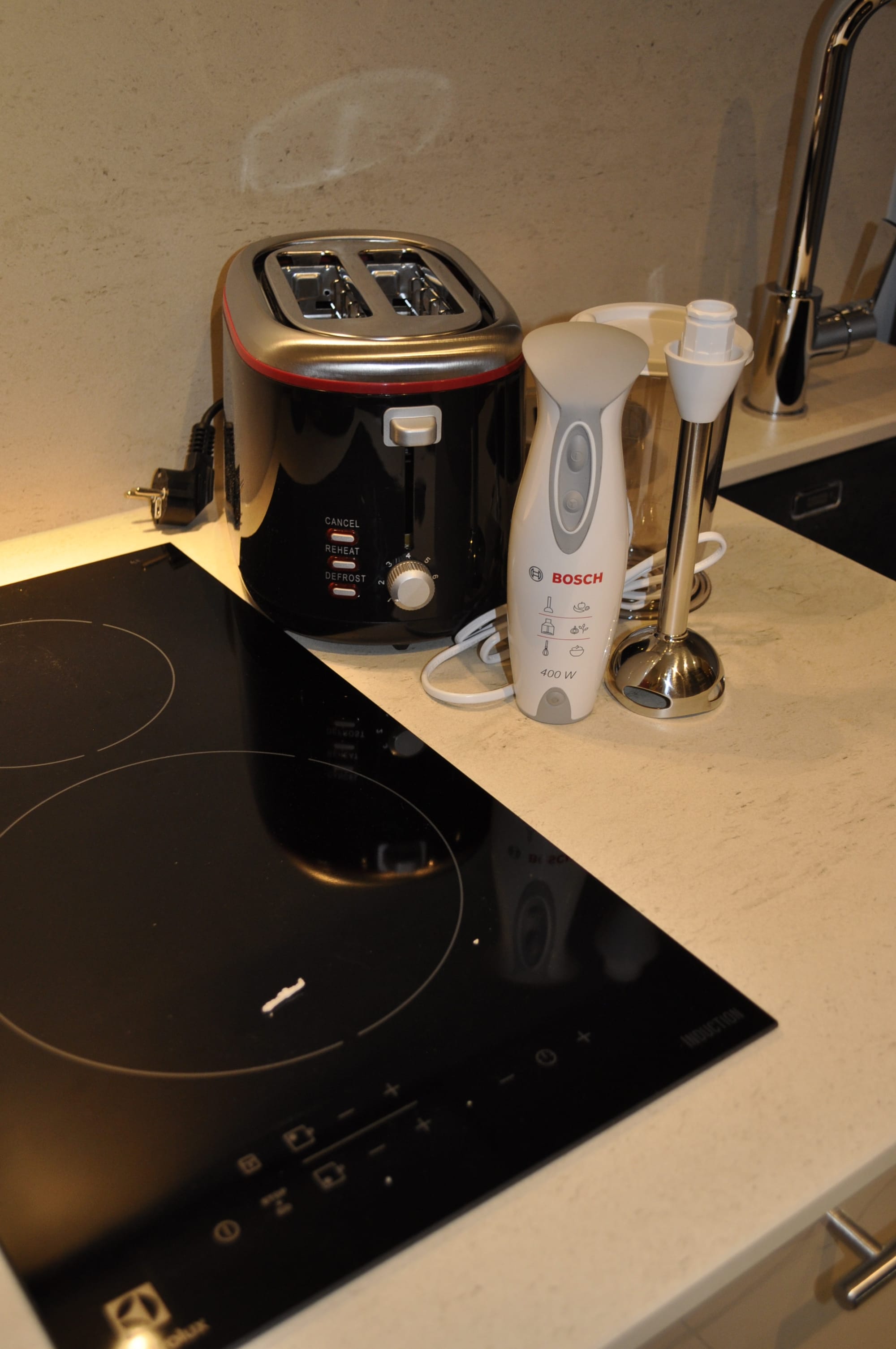 Plaque à induction, grill pain, robot mix.