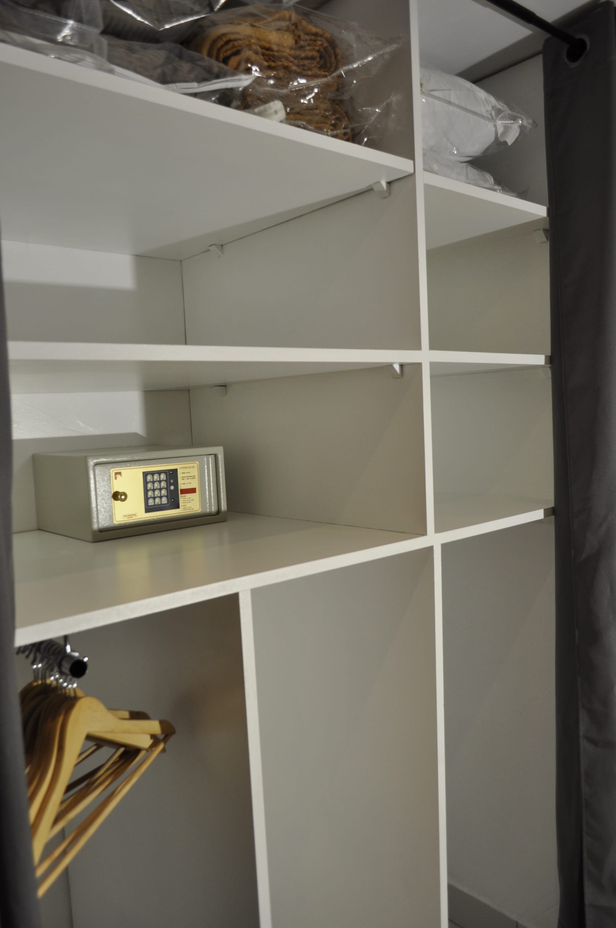 Armoire de rangement et penderie. Couvertures et oreillers supplémentaires.